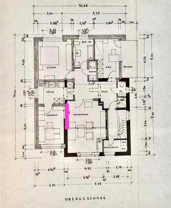 Im Grundriss pink eingezeichnet ist eine Wand eingezogen.